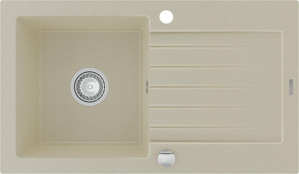 MEXEN/S - Diego granitový dřez 1 488 x 480 mm, bílá, + zlatý sifon 6512481000-20-G