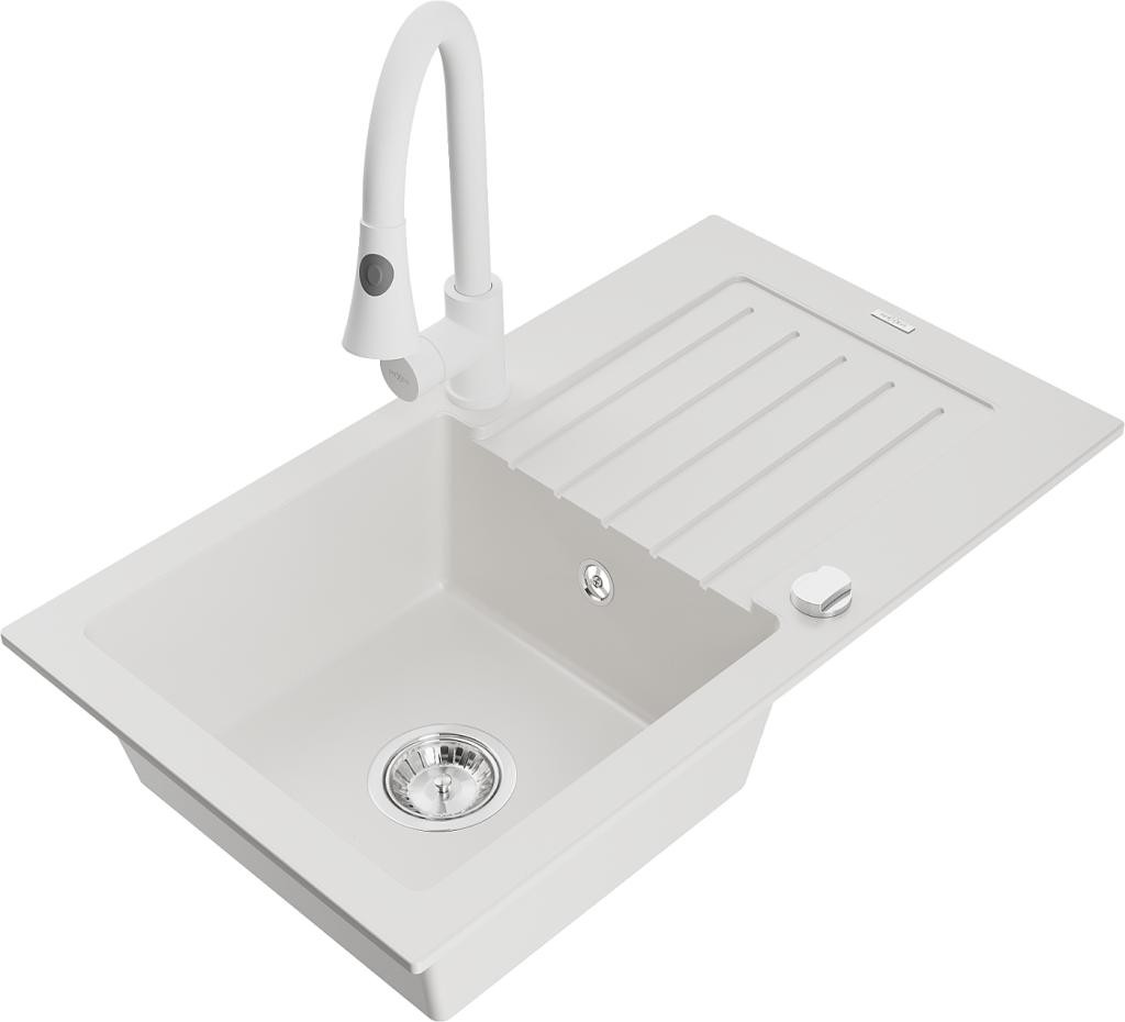 MEXEN/S - Vito Vito granitový dřez 1-miska 520x490 mm,bílá,+ zlatý sifon 6503521000-20-G