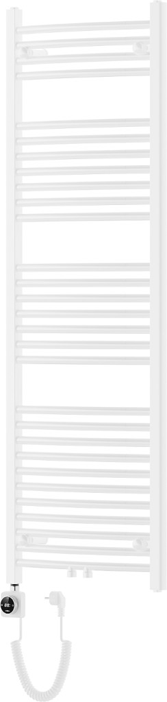 Technická data: Výška: 1500 mm Šířka: 500 mm Hloubka: 52 mm bílá barva Materiál: ocel Topný výkon: 600W Počet topných tyčí: 29 Celková délka ohřívače: 629 mm Délka topného tělesa: 540 mm Délka napájecího kabelu: 1,5m Provozní napětí: 230V/50Hz Stupeň krytí: IP44 Ovládání pomocí knoflíku s LED displejem Dodatečná ochrana proti chodu na sucho Vestavěný termostat udržuje požadovanou teplotu radiátoru Vysoce kvalitní, odolný nátěr odolný proti korozi Pro správnou funkci musí být radiátor naplněn vodou nebo směsí vody, např. s glykolem Sada obsahuje: závěsy, montážní sadu a záslepky Funkce radiátoru: - Sensitive umožňuje nastavit teplotu s přesností na 5 stupňů v rozsahu 30°C-70°C - Comfort má možnost sušení, která umožňuje nastavit teplotu ohřevu na zvolené hodinové stupnici - ECO úspora energie díky možnosti nastavení konstantní teploty až do 50°C