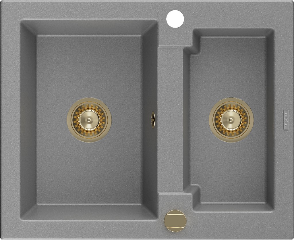 Technická data: Rozměr: 582 x 475 x 177 mm Hloubka komory: 162 mm (větší), 102 mm (menší) Rozměry komory: 395x272 mm (větší), 375x182 mm (menší) Průměr odtoku: ø90 mm Typ: 1,5-komorový Typ: Zapuštěné do pracovní desky Materiál: žula Šedá barva Povrchová úprava sifonu: zlatá Přepadový otvor: Ano Otvor pro baterii: Ano Včetně automatického sifonu Vysoká odolnost proti poškrábání a změně barvy Odolnost proti tepelným šokům Snadno čistitelný povrch