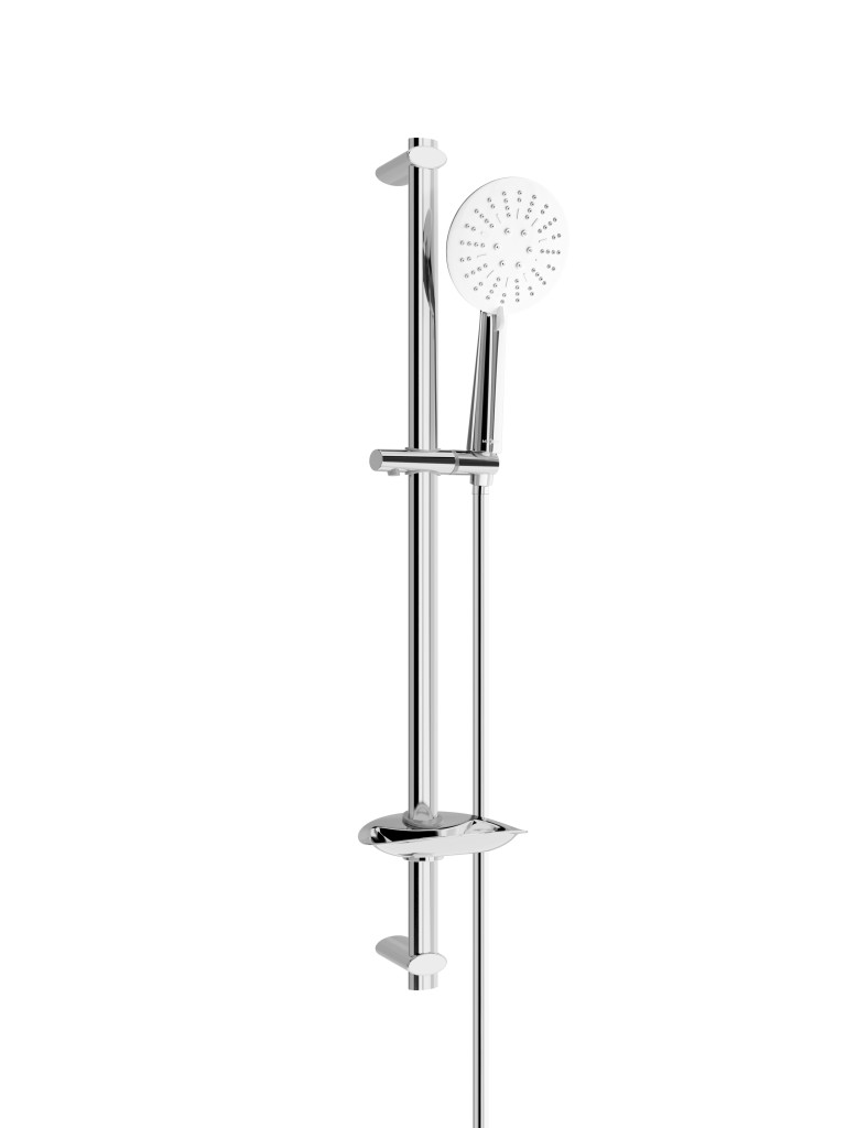 Technická data: Materiál hřídele: nerezová ocel, ABS Povrchová úprava: Chrome Výška: 750 mm Šířka lišty: 29 mm Vzdálenost od stěny: 165 mm Miska na mýdlo Posuvný držák sluchátka Nastavitelné montážní držáky Materiál sluchátek: plast Povrchová úprava sluchátek: chrom / bílá Počet funkcí: 3 Materiál hadice: PVC Povrchová úprava hadice: chrom Délka hadice: 150 cm Mosazné hroty Hladký povrch usnadňuje udržování čistoty Otočné hroty zabraňují kroucení Pružný materiál odolný proti roztažení a ohnutí