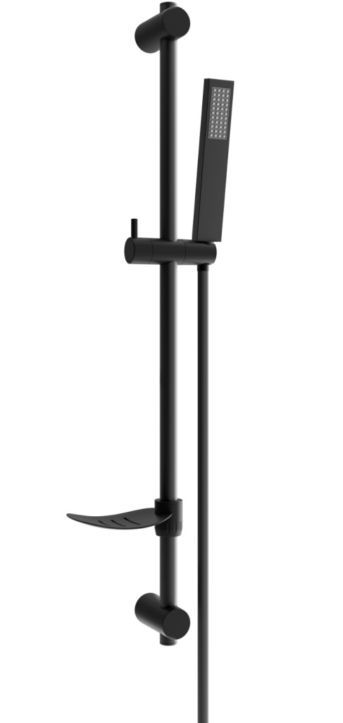 Technická data: Materiál hřídele: nerezová ocel, ABS Povrchová úprava tyče: černá Výška: 800 mm Šířka lišty: 22 mm Vzdálenost od stěny: 105 mm Miska na mýdlo Posuvný držák sluchátka Nastavitelné montážní držáky Materiál sluchátek: mosaz Povrchová úprava sluchátek: Černá Počet funkcí: 1 Materiál hadice: PVC Hadová úprava: Černá Délka hadice: 150 cm Mosazné hroty Hladký povrch usnadňuje udržování čistoty Otočné hroty zabraňují kroucení Pružný materiál odolný proti roztažení a ohnutí