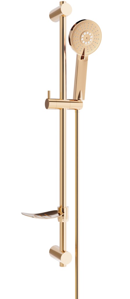 Technická data: Materiál hřídele: nerezová ocel, ABS Povrchová úprava: růžové zlato Výška: 800 mm Šířka lišty: 22 mm Vzdálenost od stěny: 105 mm Miska na mýdlo Posuvný držák sluchátka Nastavitelné montážní držáky Materiál sluchátek: plast Povrchová úprava sluchátek: růžové zlato Počet funkcí: 3 Materiál hadice: PVC Hadová úprava: Růžové zlato Délka hadice: 150 cm Mosazné hroty Hladký povrch usnadňuje udržování čistoty Otočné hroty zabraňují kroucení Pružný materiál odolný proti roztažení a ohnutí