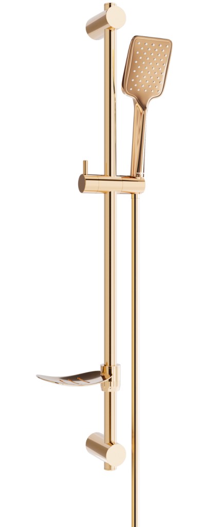 Technická data: Materiál hřídele: nerezová ocel, ABS Povrchová úprava: růžové zlato Výška: 800 mm Šířka lišty: 22 mm Vzdálenost od stěny: 105 mm Miska na mýdlo Posuvný držák sluchátka Nastavitelné montážní držáky Materiál sluchátek: plast Povrchová úprava sluchátek: růžové zlato Počet funkcí: 1 Materiál hadice: PVC Hadová úprava: Růžové zlato Délka hadice: 150 cm Mosazné hroty Hladký povrch usnadňuje udržování čistoty Otočné hroty zabraňují kroucení Pružný materiál odolný proti roztažení a ohnutí