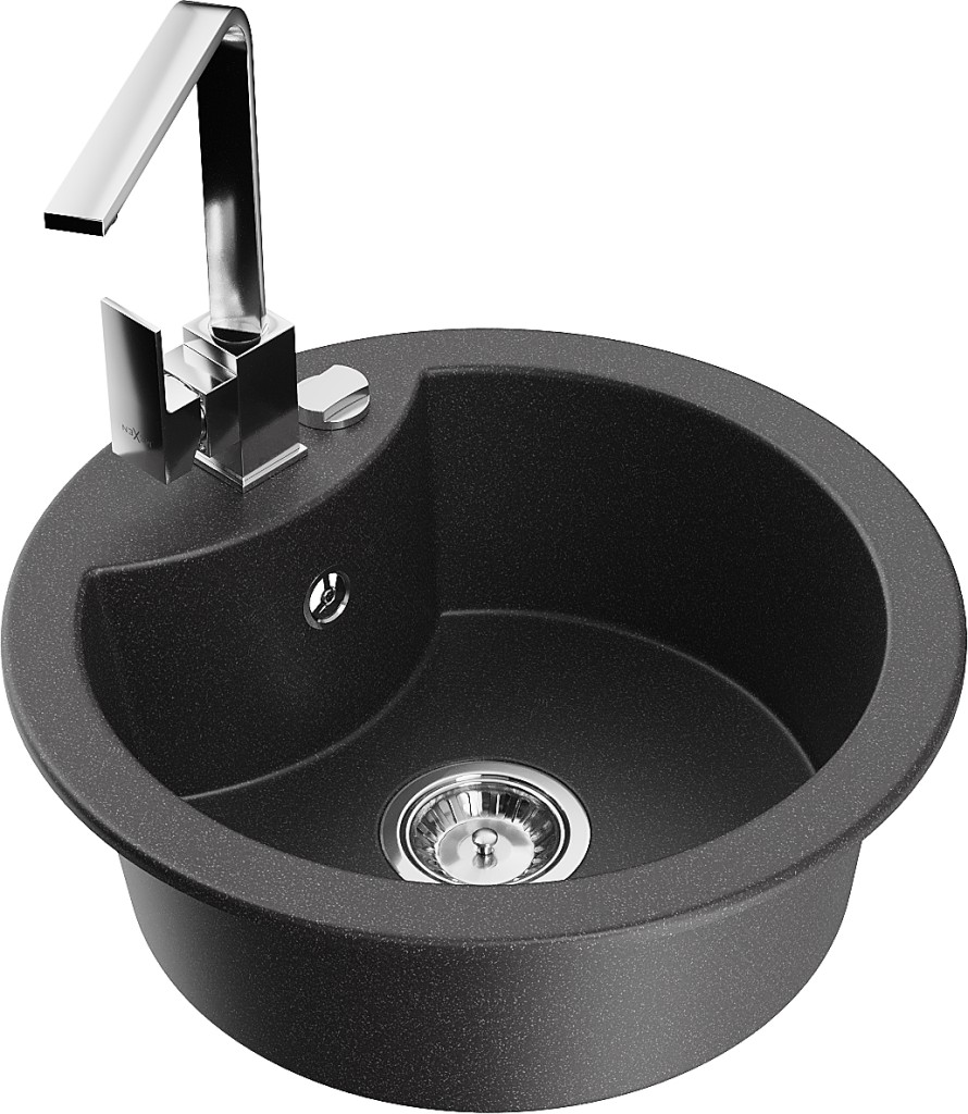 Technická data: dřez: Rozměry: 488 x 488 x 167 mm Hloubka komory: 157 mm Šířka komory: 406 mm Průměr odtoku: ø90 mm Typ: 1-komorový Typ: Zapuštěné do pracovní desky Barva: Skvrnitá černá Povrchová úprava sifonu: Chrome Materiál: žula (80 % žulové kamenivo, 20 % pryskyřice) Přepadový otvor: Ano Otvory: (baterie, automatické) 2 Vysoká odolnost proti poškrábání a změně barvy Odolnost proti tepelným šokům Snadno čistitelný povrch Jeden dodatečný vyfrézovaný otvor pro samoděrování ø35 kuchyňská baterie: Materiál: mosaz Barva: Chrome Hlava: Keramická Provzdušňovač: Ano Typ: Jedna páka Výška baterie: 290 mm Rozsah výtoku: 220 mm