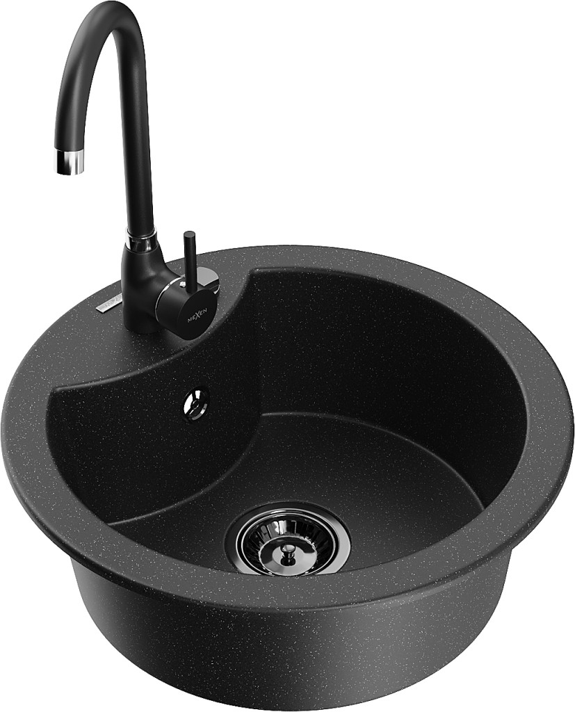 Technická data: dřez: Rozměry: 488 x 488 x 167 mm Hloubka komory: 157 mm Šířka komory: 406 mm Průměr odtoku: ø90 mm Typ: 1-komorový Typ: Zapuštěné do pracovní desky Barva: černá/stříbrná metalíza Povrchová úprava sifonu: černá Materiál: žula (80 % žulové kamenivo, 20 % pryskyřice) Přepadový otvor: Ano Otvory: (baterie, automatické) 2 Vysoká odolnost proti poškrábání a změně barvy Odolnost proti tepelným šokům Snadno čistitelný povrch Jeden dodatečný vyfrézovaný otvor pro samoděrování ø35 kuchyňská baterie: Materiál: mosaz Černá barva Hlava: Keramická Provzdušňovač: Ano Typ: Jedna páka Výška baterie: 335 mm Rozsah výtoku: 180 mm