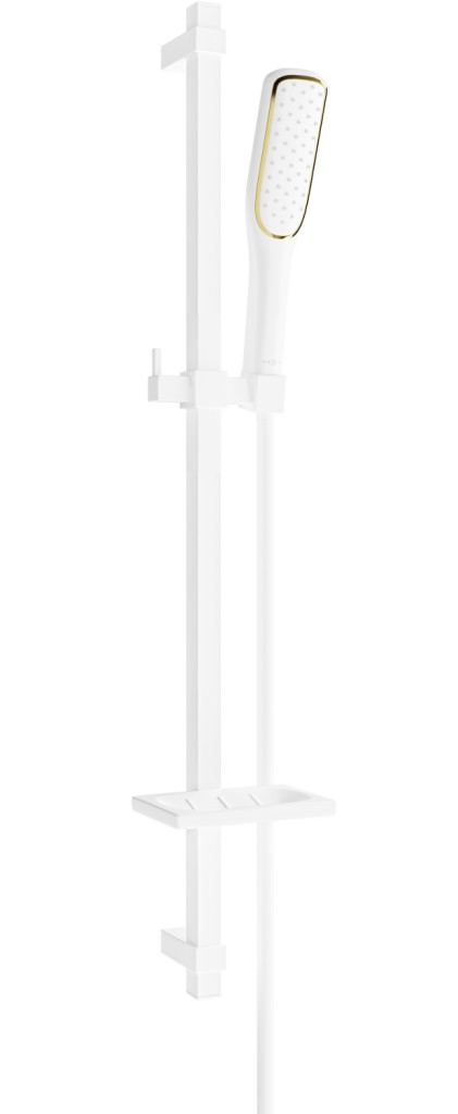 Technická data: Materiál hřídele: nerezová ocel, ABS Povrchová úprava tyčinky: bílá Výška: 800 mm Šířka lišty: 22 mm Vzdálenost od stěny: 160 mm Miska na mýdlo Posuvný držák sluchátka Nastavitelné montážní držáky Materiál sluchátek: plast Povrchová úprava sluchátek: bílá / zlatá Počet funkcí: 1 Materiál hadice: PVC Provedení hadice: bílá Délka hadice: 150 cm Mosazné hroty Hladký povrch usnadňuje udržování čistoty Otočné hroty zabraňují kroucení Pružný materiál odolný proti roztažení a ohnutí