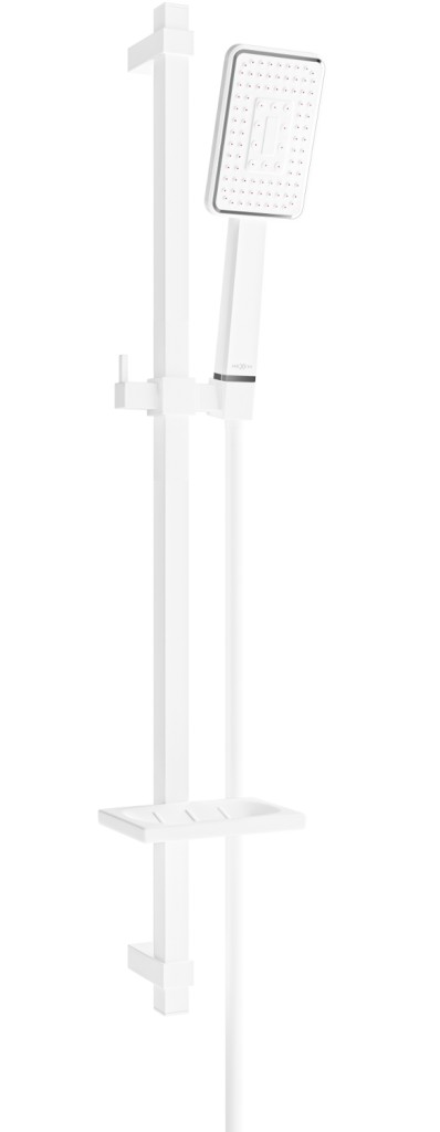Technická data: Materiál hřídele: nerezová ocel, ABS Povrchová úprava tyčinky: bílá Výška: 800 mm Šířka lišty: 22 mm Vzdálenost od stěny: 160 mm Miska na mýdlo Posuvný držák sluchátka Nastavitelné montážní držáky Materiál sluchátek: plast Povrchová úprava sluchátek: bílá / chrom Počet funkcí: 1 Materiál hadice: PVC Provedení hadice: bílá Délka hadice: 150 cm Mosazné hroty Hladký povrch usnadňuje udržování čistoty Otočné hroty zabraňují kroucení Pružný materiál odolný proti roztažení a ohnutí