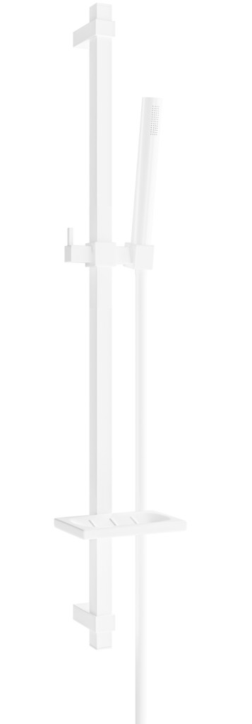 Technická data: Materiál hřídele: nerezová ocel, ABS Povrchová úprava tyčinky: bílá Výška: 800 mm Šířka lišty: 22 mm Vzdálenost od stěny: 160 mm Miska na mýdlo Posuvný držák sluchátka Nastavitelné montážní držáky Materiál sluchátek: plast Povrchová úprava sluchátek: bílá Počet funkcí: 1 Materiál hadice: PVC Provedení hadice: bílá Délka hadice: 150 cm Mosazné hroty Hladký povrch usnadňuje udržování čistoty Otočné hroty zabraňují kroucení Pružný materiál odolný proti roztažení a ohnutí