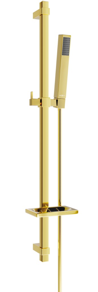 Technická data: Materiál hřídele: nerezová ocel, ABS Povrchová úprava tyčí: zlatá Výška: 800 mm Šířka lišty: 22 mm Vzdálenost od stěny: 160 mm Miska na mýdlo Posuvný držák sluchátka Nastavitelné montážní držáky Materiál sluchátek: plast Povrchová úprava sluchátek: zlatá Počet funkcí: 1 Materiál hadice: PVC Hadová úprava: zlato Délka hadice: 150 cm Mosazné hroty Hladký povrch usnadňuje udržování čistoty Otočné hroty zabraňují kroucení Pružný materiál odolný proti roztažení a ohnutí