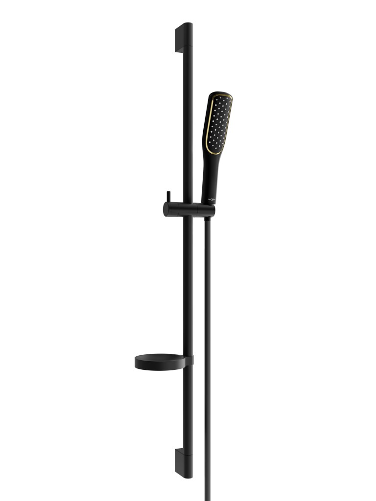 Technická data: Materiál hřídele: nerezová ocel, ABS Povrchová úprava tyče: černá Výška: 900 mm Šířka lišty: 22 mm Vzdálenost od stěny: 110 mm Miska na mýdlo Posuvný držák sluchátka Nenastavitelné montážní držáky Materiál sluchátek: plast Povrchová úprava sluchátek: černá / zlatá Počet funkcí: 1 Materiál hadice: PVC Hadová úprava: Černá Délka hadice: 150 cm Mosazné hroty Hladký povrch usnadňuje udržování čistoty Otočné hroty zabraňují kroucení Pružný materiál odolný proti roztažení a ohnutí