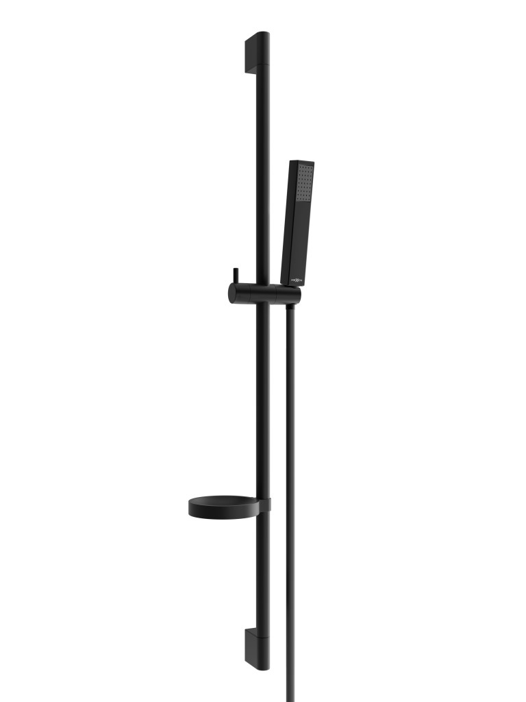Technická data: Materiál hřídele: nerezová ocel, ABS Povrchová úprava tyče: černá Výška: 900 mm Šířka lišty: 22 mm Vzdálenost od stěny: 110 mm Miska na mýdlo Posuvný držák sluchátka Nenastavitelné montážní držáky Materiál sluchátek: plast Povrchová úprava sluchátek: Černá Počet funkcí: 1 Materiál hadice: PVC Hadová úprava: Černá Délka hadice: 150 cm Mosazné hroty Hladký povrch usnadňuje udržování čistoty Otočné hroty zabraňují kroucení Pružný materiál odolný proti roztažení a ohnutí
