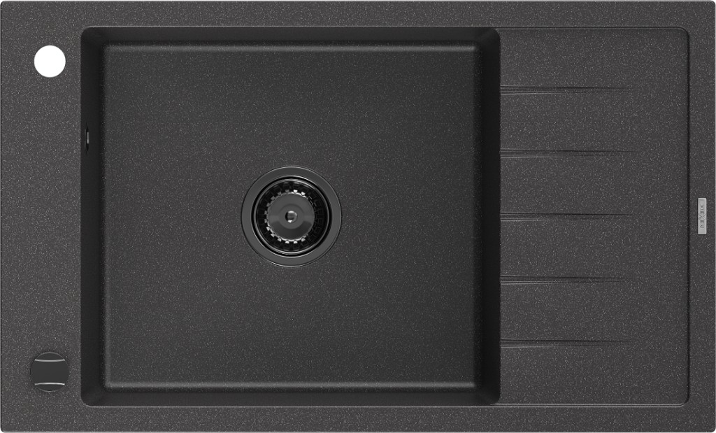 Technická data: Rozměr: 795 x 480 x 200 mm Hloubka komory: 190 mm Rozměry komory: 465x420 mm Průměr odtoku: ø90 mm Typ: 1-miska s krátkým odkapávačem Typ: Zapuštěné do pracovní desky Materiál: žula Barva: Skvrnitá černá Povrchová úprava sifonu: černá Přepadový otvor: Ano Otvor pro baterii: Ano Včetně automatického sifonu Vysoká odolnost proti poškrábání a změně barvy Odolnost proti tepelným šokům Snadno čistitelný povrch Jeden dodatečný vyfrézovaný otvor pro samoděrování ø35