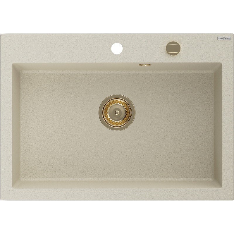 Specifikace produktu: Rozměr: 700 x 500 x 210 mm Hloubka komory: 195 mm Rozměry komory: 630x380 mm Průměr odtoku: ø90 mm Typ: 1-komorový Typ: Zapuštěné Materiál: žula Barva: Béžová Povrchová úprava sifonu: zlatá Přepadový otvor: Ano Otvor pro kohoutek: Ano Včetně automatického sifonu Vysoká odolnost proti poškrábání a změně barvy Odolnost proti tepelným šokům Snadno čistitelný povrch Jeden dodatečný vyfrézovaný otvor pro samoděrování ø35
