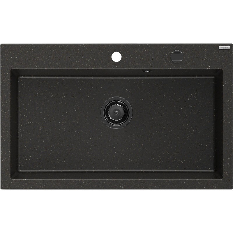 Specifikace produktu: Rozměr: 800 x 500 x 210 mm Hloubka komory: 195 mm Rozměry komory: 730x380 mm Průměr odtoku: ø90 mm Typ: 1-komorový Typ: Zapuštěné Materiál: žula Barva: černá/zlatá metalíza Povrchová úprava sifonu: černá Přepadový otvor: Ano Otvor pro kohoutek: Ano Včetně automatického sifonu Vysoká odolnost proti poškrábání a změně barvy Odolnost proti tepelným šokům Snadno čistitelný povrch Jeden dodatečný vyfrézovaný otvor pro samoděrování ø35