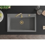 MEXEN/S - Gaspar granitový dřez 1.5 s odkapávačem včetně baterie Flora, šedá 6507-71-670401-70-B