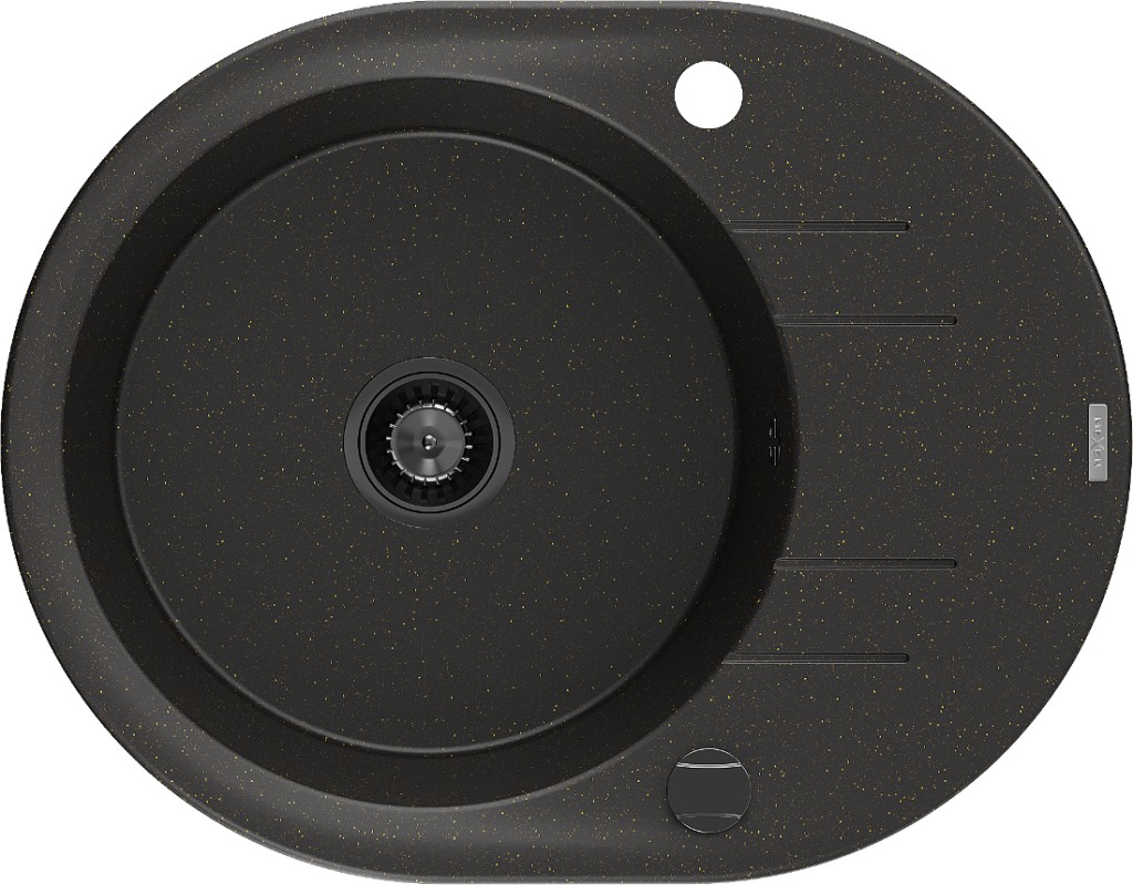 MEXEN/S - Pablo granitový dřez 1 s odkapávačem včetně baterie Flora, černá/zlatá metalik 6510-75-670401-57-B