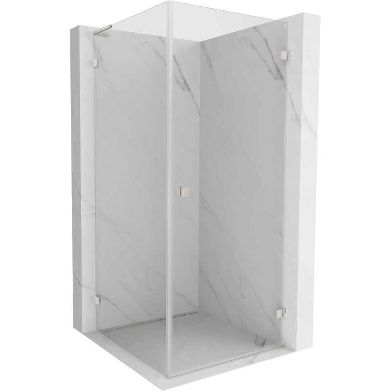 Specifikace produktu: Rozměr: 100x100 cm (pravé dveře 100 cm, stěna 100 cm) Výška: 200 cm Strana montáže: Pravá Vchod: Křídlové dveře Barva skla: Průhledná Povrchová úprava: Kartáčovaný nikl Profil: Hliník L-úhlový stabilizátor: nerezová ocel Typ skla: Tvrzené Tloušťka skla: dveře 6 mm, stěna 8 mm Snadno čistitelný povlak Možnost nastavení šířky Dva montážní systémy: - S profilem, který umožňuje vyrovnání nerovností stěn - Bez profilu pro dokonale rovné stěny Lze namontovat na sprchovou vaničku nebo dlaždice Mechanismus zvedání a spouštění dveří Mosazné spony a panty v jedné rovině se skleněnou tabulí Magnetický proužek a elastomerová těsnění pro odvod vody Hliníkový práh pro těsnění dveří