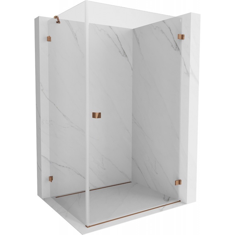 Specifikace produktu: Rozměr: 100x90 cm (pravé dveře 100 cm, stěna 90 cm) Výška: 200 cm Strana montáže: Pravá Vchod: Dveře s otočnými panty Barva skla: Průhledná Povrchová úprava: Růžové zlato Profil: Hliník Stabilizátor ve tvaru L: Nerezová ocel Typ skla: Tvrzené Tloušťka skla: dveře 6 mm, stěna 8 mm Povlak pro snadné čištění Možnost nastavení šířky Dva montážní systémy: - S profilem, který umožňuje vyrovnání nerovností stěny - Bez profilu v případě dokonale rovných stěn Možnost montáže na sprchovou vaničku nebo obklady Mechanismus pro zvedání a spouštění dveří Mosazné svorky v jedné rovině se skleněnou tabulí Magnetický proužek a elastomerové těsnění pro odvod vody Hliníkový práh těsnění dveří