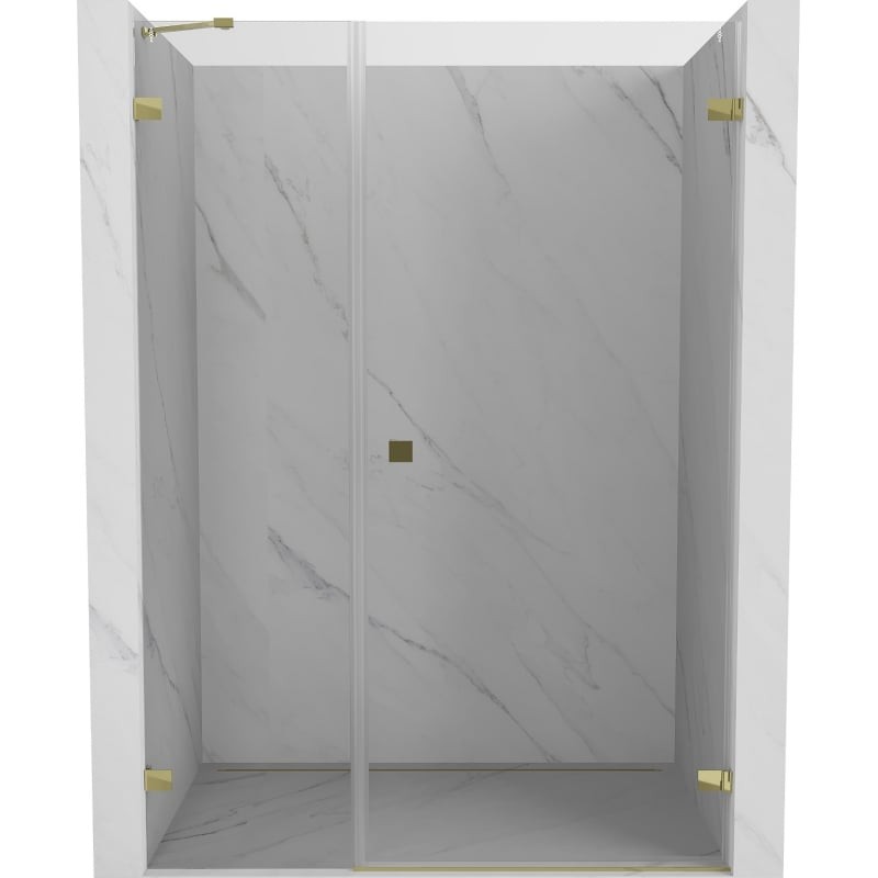 Specifikace produktu: Rozměr: 130x200 cm Strana montáže: Pravá Vchod: Výklopný Barva skla: Průhledná Povrchová úprava: Zlatá Profil: Hliník Typ skla: Tvrzené Tloušťka skla: dveře 6 mm, stěna 8 mm Snadno čistitelný povlak Možnost nastavení šířky Dva montážní systémy: - S profilem, který umožňuje vyrovnání nerovností stěn - Bez profilu pro dokonale rovné stěny Lze namontovat na sprchovou vaničku nebo dlaždice Mechanismus zvedání a spouštění dveří Mosazné spony zarovnané se skleněnou tabulí Magnetický proužek a elastomerová těsnění pro odvod vody Hliníkový práh těsnění dveří