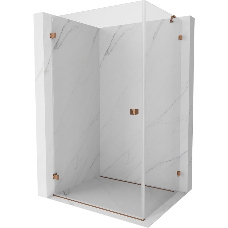 Specifikace produktu: Rozměr: 85x70 cm (levé dveře 85 cm, stěna 70 cm) Výška: 200 cm Strana montáže: Levá Vchod: Křídlové dveře Barva skla: Průhledná Povrchová úprava: Růžové zlato Profil: Hliník Typ skla: Tvrzené Tloušťka skla: dveře 6 mm, stěna 8 mm Snadno čistitelný povlak Možnost nastavení šířky Dva montážní systémy: - S profilem, který umožňuje vyrovnání nerovností stěn - Bez profilu pro dokonale rovné stěny Lze namontovat na sprchovou vaničku nebo dlaždice Mechanismus zvedání a spouštění dveří Mosazné spony zarovnané se skleněnou tabulí Magnetický proužek a elastomerová těsnění pro odvod vody Hliníkový práh pro těsnění dveří