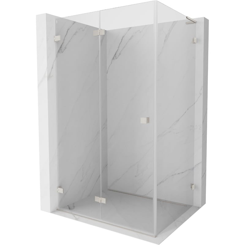 Specifikace produktu: Rozměr: 100x90 cm (levé dveře 100 cm, stěna 90 cm) Výška: 200 cm Strana montáže: Levá Vchod: Skládací dveře Barva skla: Průhledná Povrchová úprava: Kartáčovaný nikl Profil: Hliník Úhlový stabilizátor L: Nerezová ocel Typ skla: Tvrzené Tloušťka skla: dveře 6 mm, stěna 8 mm Povlak pro snadné čištění Možnost nastavení šířky Dva montážní systémy: - S profilem, který umožňuje vyrovnání nerovností stěn - Bez profilu v případě dokonale rovných stěn Možnost montáže na sprchovou vaničku nebo obklady Mosazné svorky a panty v jedné rovině se skleněnou tabulí Magnetický proužek a elastomerové těsnění pro odvod vody Hliníkový práh těsnění dveří