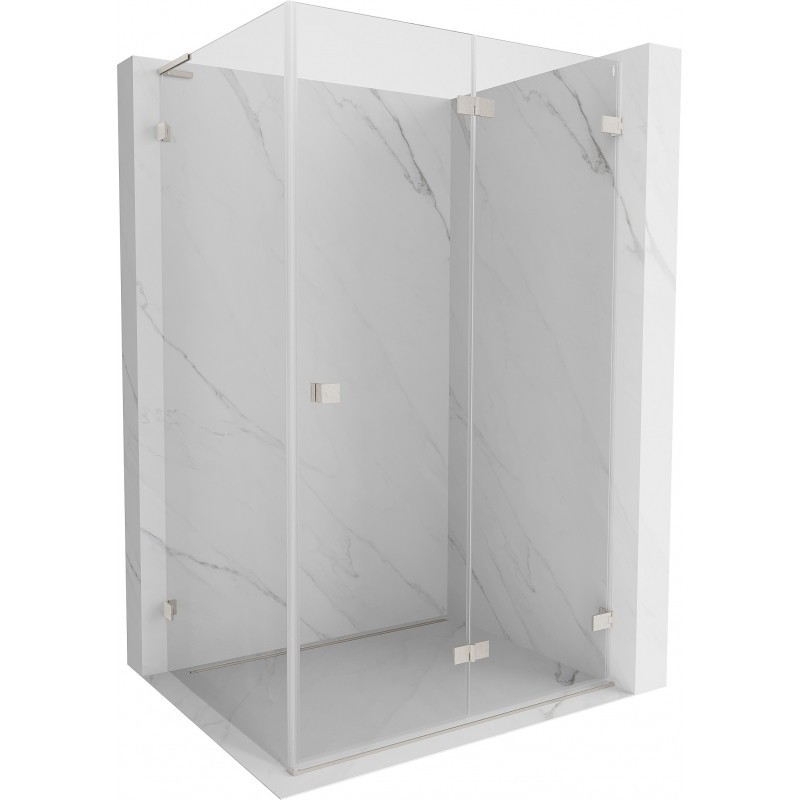 Specifikace produktu: Rozměr: 95x90 cm (pravé dveře 95 cm, stěna 90 cm) Výška: 200 cm Strana montáže: Pravá Vchod: Skládací dveře Barva skla: Průhledná Povrchová úprava: Kartáčovaný nikl Profil: Hliník Úhlový stabilizátor L: Nerezová ocel Typ skla: Tvrzené Tloušťka skla: dveře 6 mm, stěna 8 mm Povlak pro snadné čištění Možnost nastavení šířky Dva montážní systémy: - S profilem, který umožňuje vyrovnání nerovností stěn - Bez profilu v případě dokonale rovných stěn Možnost montáže na sprchovou vaničku nebo obklady Mosazné svorky a panty v jedné rovině se skleněnou tabulí Magnetický proužek a elastomerové těsnění pro odvod vody Hliníkový práh těsnění dveří