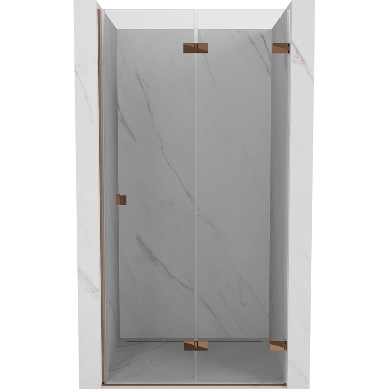 Specifikace produktu: Rozměr: 95x200 cm Strana montáže: Pravá Vchod: Skládací Barva skla: Průhledná Povrchová úprava: Růžové zlato Profil: Hliník Typ skla: Tvrzené Tloušťka skla: 6 mm Povrchová úprava pro snadné čištění Možnost nastavení šířky Dva montážní systémy: - S profilem, který umožňuje vyrovnání nerovností stěn - Bez profilu v případě dokonale rovných stěn Možnost montáže na sprchovou vaničku nebo obklady Mosazné svorky a panty v jedné rovině se skleněnou tabulí Magnetický proužek a elastomerové těsnění pro odvod vody Hliníkový práh těsnění dveří