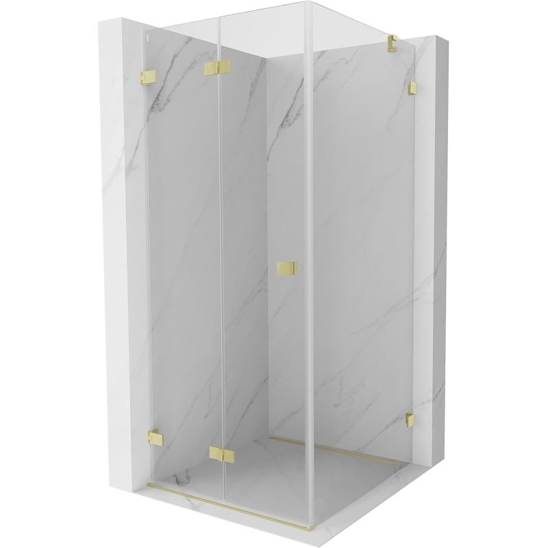 Specifikace produktu: Rozměr: 100x100 cm (levé dveře 100 cm, stěna 100 cm) Výška: 200 cm Strana montáže: Levá Vchod: Skládací dveře Barva skla: Průhledná Povrchová úprava: Kartáčované zlato Profil: Hliník Typ skla: Tvrzené Tloušťka skla: dveře 6 mm, stěna 8 mm Snadno čistitelný povlak Možnost nastavení šířky Dva montážní systémy: - S profilem, který umožňuje vyrovnání nerovností stěn - Bez profilu pro dokonale rovné stěny Lze namontovat na sprchovou vaničku nebo dlaždice Mosazné spony a panty v jedné rovině se skleněnou tabulí Magnetický proužek a elastomerová těsnění pro odvod vody Hliníkový práh pro těsnění dveří