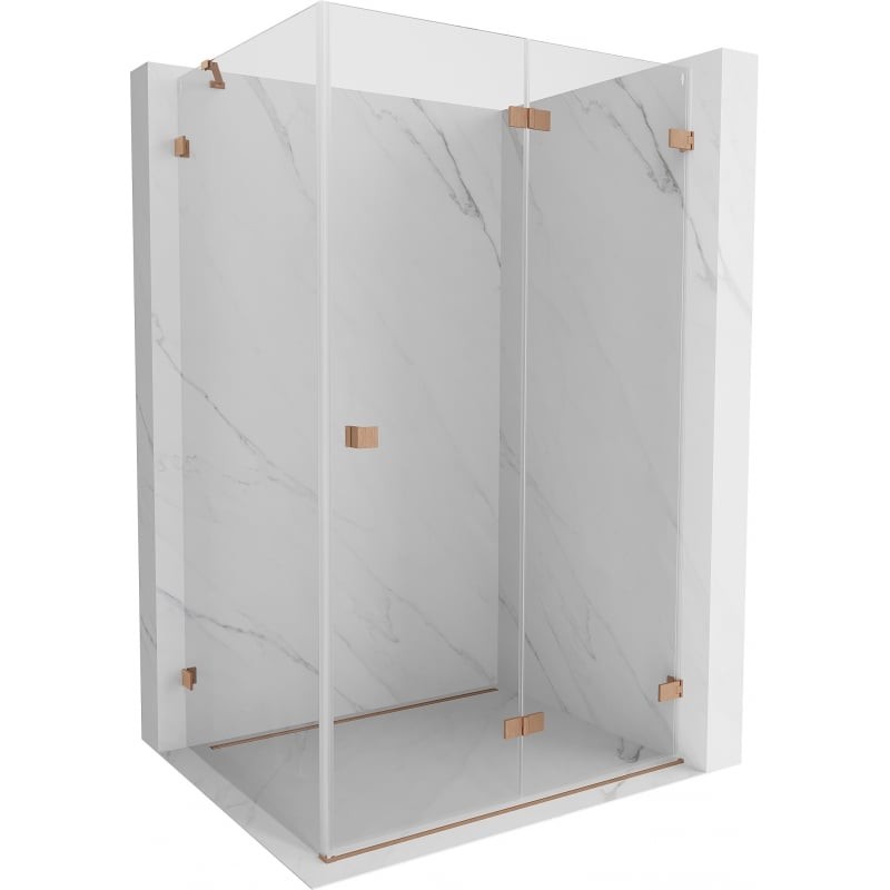 Specifikace produktu: Rozměr: 85x70 cm (pravé dveře 85 cm, stěna 70 cm) Výška: 200 cm Strana montáže: Pravá Vchod: Skládací dveře Barva skla: Průhledná Povrchová úprava: Kartáčovaná měď Profil: Hliník Typ skla: Tvrzené Tloušťka skla: dveře 6 mm, stěna 8 mm Snadno čistitelný povlak Možnost nastavení šířky Dva montážní systémy: - S profilem, který umožňuje vyrovnání nerovností stěn - Bez profilu pro dokonale rovné stěny Lze namontovat na sprchovou vaničku nebo dlaždice Mosazné spony a panty v jedné rovině se skleněnou tabulí Magnetický proužek a elastomerová těsnění pro odvod vody Hliníkový práh pro těsnění dveří