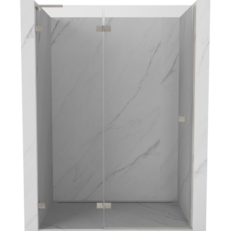 Specifikace produktu: Rozměr: 130x200 cm Strana montáže: Levá Vchod: Výklopný Barva skla: Průhledná Povrchová úprava: Kartáčovaný nikl Profil: Hliník L-úhlový stabilizátor: nerezová ocel Typ skla: Tvrzené Tloušťka skla: 8 mm Snadno čistitelný povlak Možnost nastavení šířky Dva montážní systémy: - S profilem, který umožňuje vyrovnání nerovností stěn - Bez profilu pro dokonale rovné stěny Lze namontovat na sprchovou vaničku nebo dlaždice Mechanismus zvedání a spouštění dveří Mosazné spony a panty v jedné rovině se skleněnou tabulí Magnetický proužek a elastomerová těsnění pro odvod vody Hliníkový práh těsnění dveří