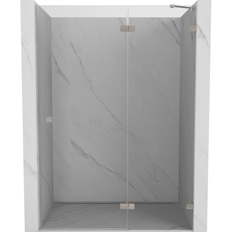 Specifikace produktu: Rozměr: 140x200 cm Strana montáže: Pravá Vchod: Výklopný Barva skla: Průhledná Povrchová úprava: Kartáčovaný nikl Profil: Hliník L-úhlový stabilizátor: nerezová ocel Typ skla: Tvrzené Tloušťka skla: 8 mm Snadno čistitelný povlak Možnost nastavení šířky Dva montážní systémy: - S profilem, který umožňuje vyrovnání nerovností stěn - Bez profilu pro dokonale rovné stěny Lze namontovat na sprchovou vaničku nebo dlaždice Mechanismus zvedání a spouštění dveří Mosazné spony a panty v jedné rovině se skleněnou tabulí Magnetický proužek a elastomerová těsnění pro odvod vody Hliníkový práh těsnění dveří