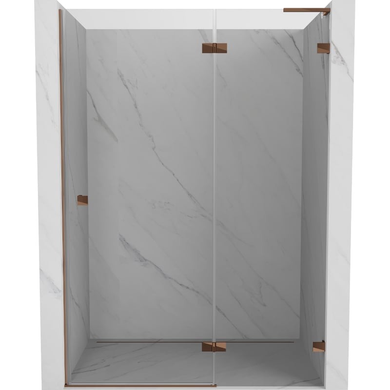 Specifikace produktu: Rozměr: 140x200 cm Strana montáže: Pravá Vchod: Otevíravý Barva skla: Průhledná Povrchová úprava: Růžové zlato Profil: Hliník Stabilizátor ve tvaru L: Nerezová ocel Typ skla: Tvrzené Tloušťka skla: 8 mm Povrchová úprava pro snadné čištění Možnost nastavení šířky Dva montážní systémy: - S profilem, který umožňuje vyrovnání nerovností stěny - Bez profilu pro dokonale rovné stěny Možnost montáže na sprchovou vaničku nebo dlaždice Mechanismus pro zvedání a spouštění dveří Mosazné svorky a panty v jedné rovině se skleněnou tabulí Magnetický proužek a elastomerové těsnění pro odvod vody Hliníkový práh těsnění dveří