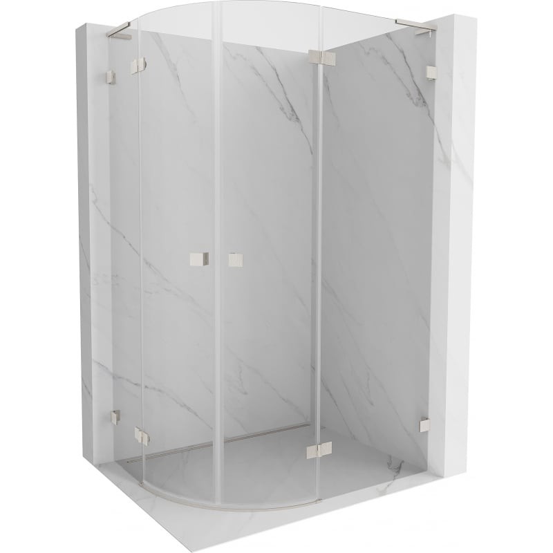 Specifikace produktu: Rozměr: 100x80 cm (pravé dveře 100 cm, levé dveře 80 cm) Výška: 200 cm Poloměr zaoblení R55 Strana montáže: Pravá Vchod: Křídlové dveře Barva skla: Průhledná Povrchová úprava: Kartáčovaný nikl Profil: Hliník L-úhlový stabilizátor: nerezová ocel Typ skla: Tvrzené Tloušťka skla: 8 mm Snadno čistitelný povlak Možnost nastavení šířky Dva montážní systémy: - S profilem, který umožňuje vyrovnání nerovností stěn - Bez profilu pro dokonale rovné stěny Lze namontovat na sprchovou vaničku nebo dlaždice Mechanismus zvedání a spouštění dveří Mosazné spony a panty v jedné rovině se skleněnou tabulí Magnetický proužek a elastomerová těsnění pro odvod vody Hliníkový práh těsnění dveří