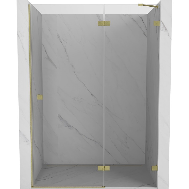 Specifikace produktu: Rozměr: 140x200 cm Strana montáže: Pravá Vchod: Výklopný Barva skla: Průhledná Povrchová úprava: Kartáčované zlato Profil: Hliník Konzola: Nerezová ocel Typ skla: Tvrzené Tloušťka skla: 8 mm Snadno čistitelný povlak Možnost nastavení šířky Dva montážní systémy: - S profilem, který umožňuje vyrovnání nerovností stěn - Bez profilu pro dokonale rovné stěny Lze namontovat na sprchovou vaničku nebo dlaždice Mechanismus zvedání a spouštění dveří Mosazné spony a panty v jedné rovině se skleněnou tabulí Magnetický proužek a elastomerová těsnění pro odvod vody Hliníkový práh pro těsnění dveří