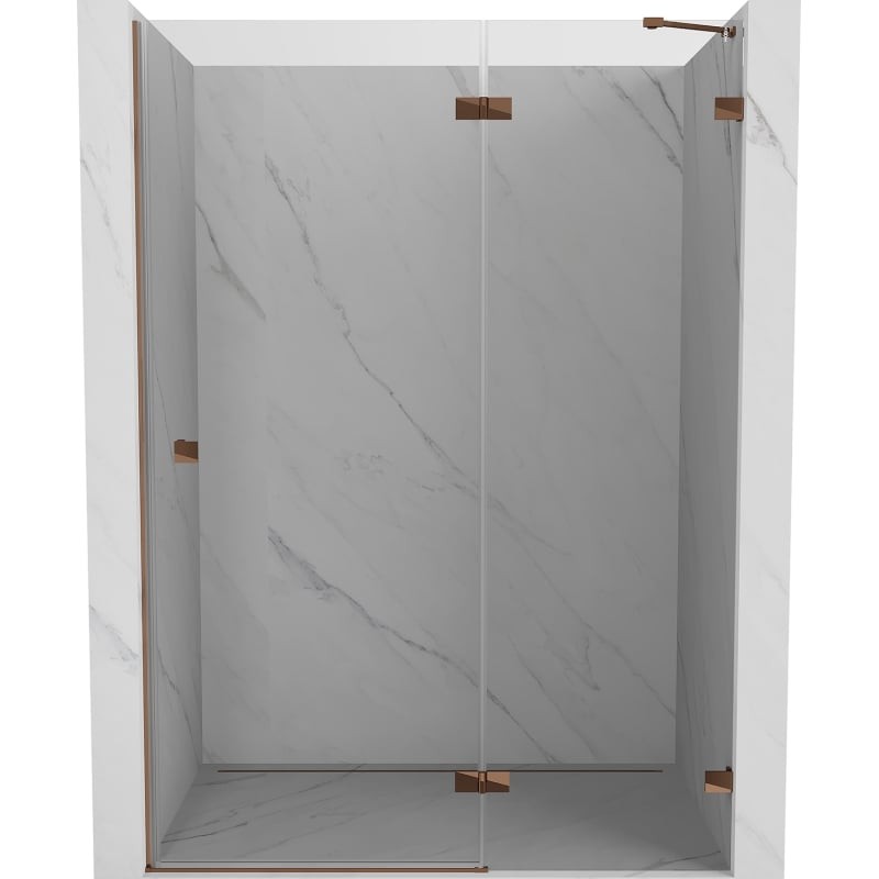 Specifikace produktu: Rozměr: 140x200 cm Strana montáže: Pravá Vchod: Otevíravý Barva skla: Průhledná Povrchová úprava: Růžové zlato Profil: Hliník Nosník: Nerezová ocel Typ skla: Tvrzené Tloušťka skla: 8 mm Povrchová úprava pro snadné čištění Nastavitelná šířka Dva montážní systémy: - S profilem, který umožňuje vyrovnání nerovností stěn - Bez profilu pro dokonale rovné stěny Možnost montáže na sprchovou vaničku nebo obklady Mechanismus pro zvedání a spouštění dveří Mosazné svorky a panty v jedné rovině se skleněnou tabulí Magnetický proužek a elastomerové těsnění pro odvod vody Hliníkový práh těsnění dveří
