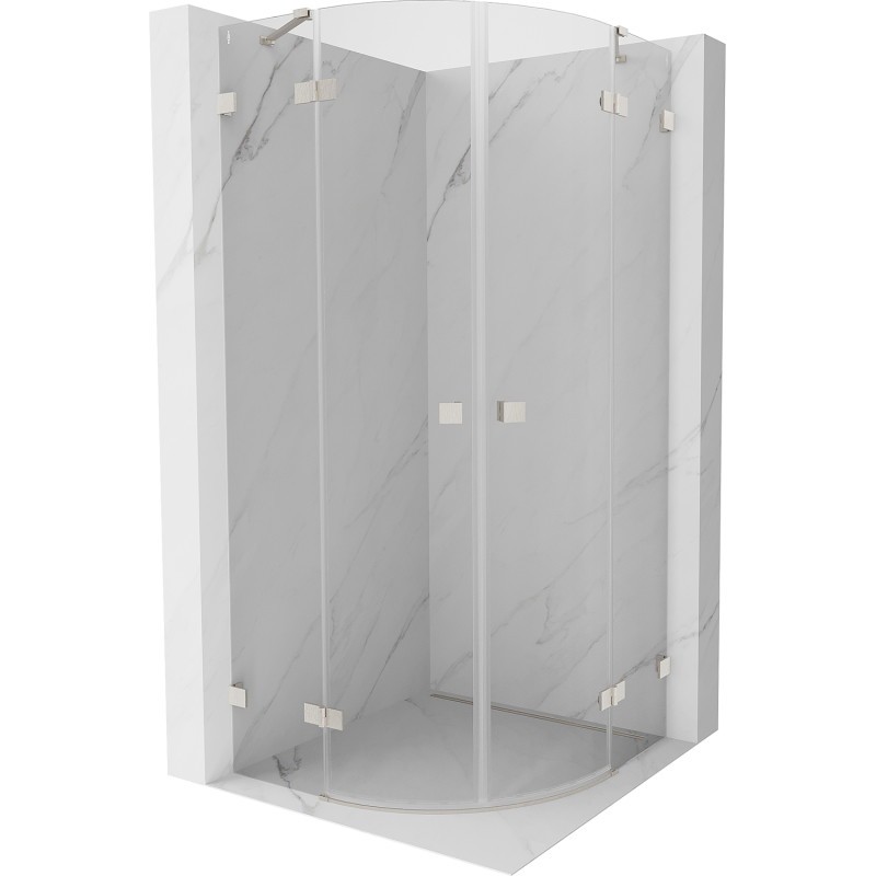 Specifikace produktu: Rozměr: 100x100 cm Výška: 200 cm Poloměr zaoblení R55 Strana montáže: Univerzální Vchod: Křídlové dveře Barva skla: Průhledná Povrchová úprava: Kartáčovaný nikl Profil: Hliník Typ skla: Tvrzené Tloušťka skla: 8 mm Snadno čistitelný povlak Možnost nastavení šířky Dva montážní systémy: - S profilem, který umožňuje vyrovnání nerovností stěn - Bez profilu pro dokonale rovné stěny Lze namontovat na sprchovou vaničku nebo dlaždice Mechanismus zvedání a spouštění dveří Mosazné spony a panty v jedné rovině se skleněnou tabulí Magnetický proužek a elastomerová těsnění pro odvod vody Hliníkový práh pro těsnění dveří