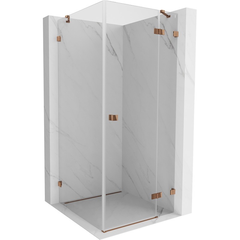 Specifikace produktu: Rozměr: 90x90 cm (pravé dveře 90 cm, stěna 90 cm) Výška: 200 cm Strana montáže: Pravá Vchod: Dveře s výklopnými křídly Barva skla: Průhledná Povrchová úprava: Růžové zlato Profil: Hliník Typ skla: Tvrzené Tloušťka skla: 8 mm Povrchová úprava pro snadné čištění Možnost nastavení šířky Dva montážní systémy: - S profilem, který umožňuje vyrovnání nerovností stěn - Bez profilu pro dokonale rovné stěny Možnost montáže na sprchovou vaničku nebo obklady Mechanismus pro zvedání a spouštění dveří Mosazné svorky a panty v jedné rovině se skleněnou tabulí Magnetický proužek a elastomerové těsnění pro odvod vody Hliníkový práh těsnění dveří