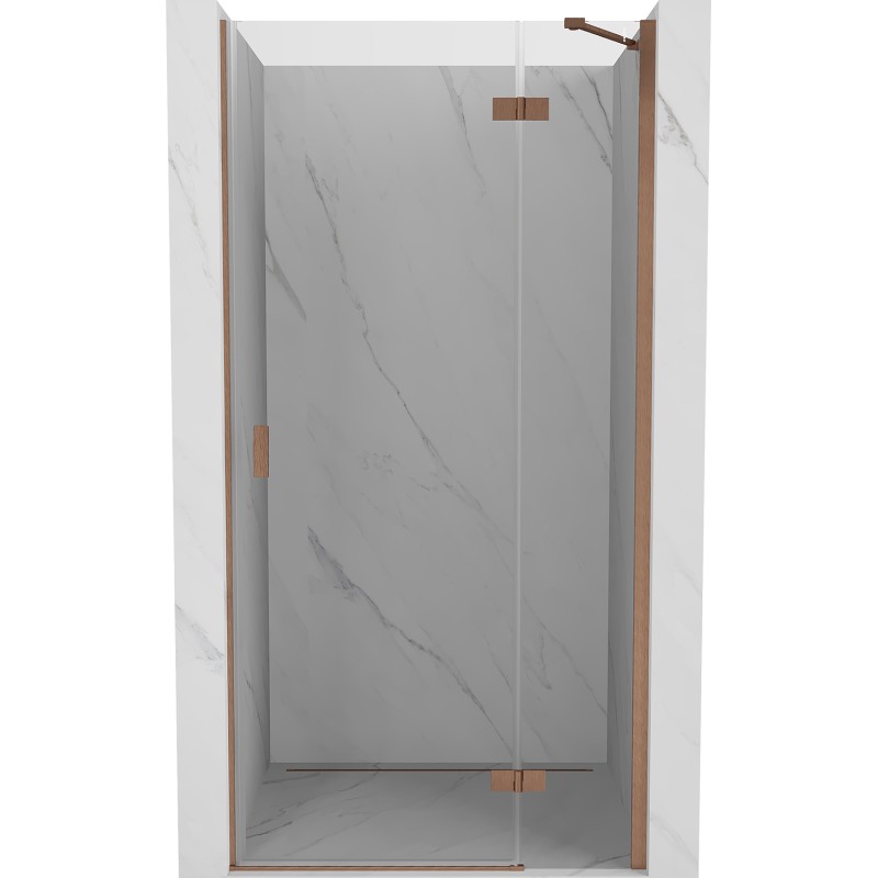 Specifikace produktu: Rozměr: 70x200 cm Strana montáže: Pravá Vchod: Výklopný Barva skla: Průhledná Povrchová úprava: Kartáčovaná měď Profil: Hliník Konzola: Nerezová ocel Typ skla: Tvrzené Tloušťka skla: 6 mm Snadno čistitelný povlak Možnost nastavení šířky Lze namontovat na sprchovou vaničku nebo dlaždice Mechanismus zvedání a spouštění dveří Mosazné panty zapuštěné do skleněné tabule Magnetický proužek a elastomerová těsnění pro odvod vody Hliníkový práh těsnění dveří