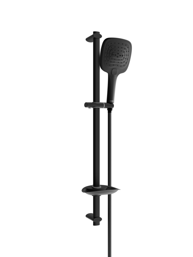 Technická data: Materiál hřídele: nerezová ocel, ABS Povrchová úprava tyče: černá Výška: 750 mm Šířka lišty: 29 mm Vzdálenost od stěny: 165 mm Miska na mýdlo Posuvný držák sluchátka Nastavitelné montážní držáky Materiál sluchátek: plast Povrchová úprava sluchátek: Černá Počet funkcí: 3 Materiál hadice: PVC Hadová úprava: Černá Délka hadice: 150 cm Mosazné hroty Hladký povrch usnadňuje udržování čistoty Otočné hroty zabraňují kroucení Pružný materiál odolný proti roztažení a ohnutí