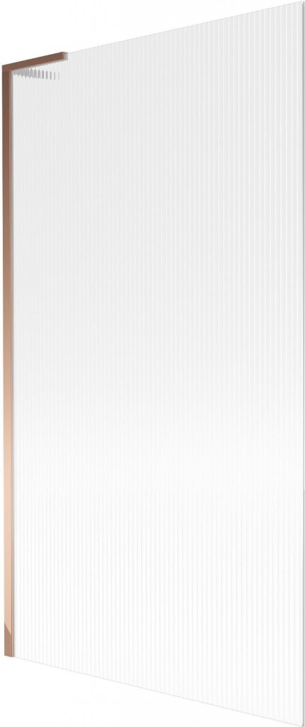 Technické údaje: Šířka: 100 cm Výška: 150 cm 1-křídlový typ Instalace: Univerzální Typ: Trvalý Typ skla: Tvrzené Barva skla: pruhy Tloušťka skla: 6 mm Povrchová úprava: růžové zlato L-úhlový stabilizátor: Nerezová ocel Povlak pro snadné čištění Vyrovnání nerovností stěny
