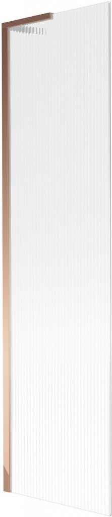 Technické údaje: Šířka: 50 cm Výška: 150 cm 1-křídlový typ Instalace: Univerzální Typ: Trvalý Typ skla: Tvrzené Barva skla: pruhy Tloušťka skla: 6 mm Povrchová úprava: růžové zlato L-úhlový stabilizátor: Nerezová ocel Povlak pro snadné čištění Vyrovnání nerovností stěny