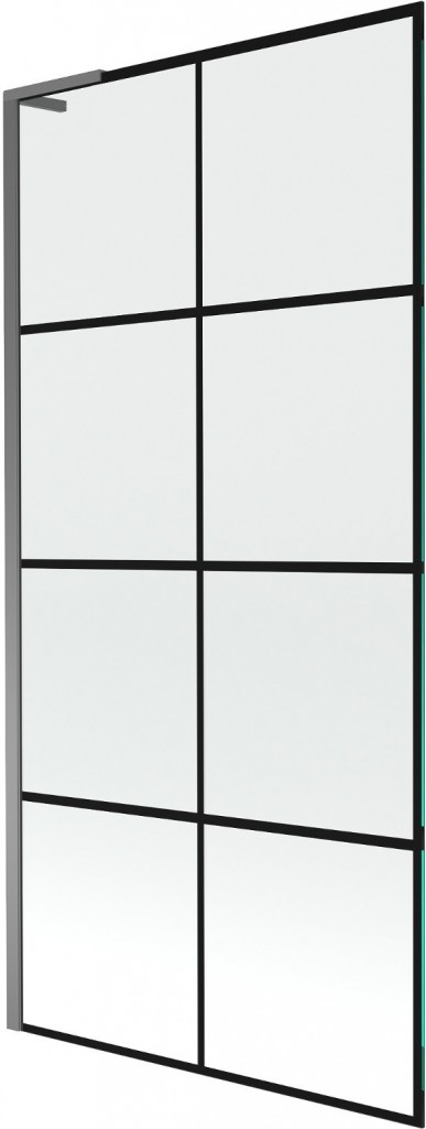 Technické údaje: Šířka: 90 cm Výška: 150 cm 1-křídlový typ Instalace: Univerzální Typ: Trvalý Typ skla: Tvrzené Barva skla: Černý vzor Tloušťka skla: 6 mm Povrchová úprava: Dělový kov L-úhlový stabilizátor: Nerezová ocel Povlak pro snadné čištění Vyrovnání nerovností stěny