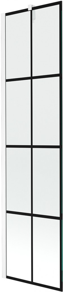 Technická data: Šířka: 50 cm Výška: 150 cm 1-listý typ Montáž: Univerzální Typ: Pevný Typ skla: Tvrzené Barva skla: Černý vzor Tloušťka skla: 6mm Povrchová úprava: Bílá Snadno čistitelný povlak Vyrovnání nerovností stěny Sada těsnění pro odvod vody