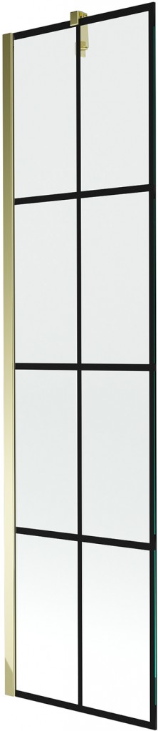 Technická data: Šířka: 50 cm Výška: 150 cm 1-listý typ Montáž: Univerzální Typ: Pevný Typ skla: Tvrzené Barva skla: Černý vzor Tloušťka skla: 6mm Povrchová úprava: zlatá Snadno čistitelný povlak Vyrovnání nerovností stěny Sada těsnění pro odvod vody