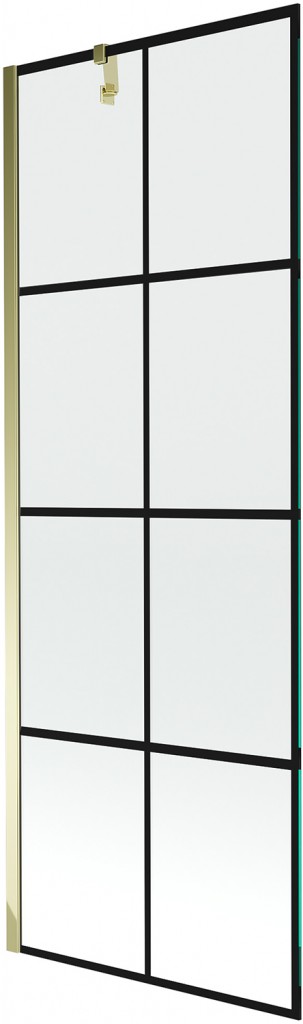 Technická data: Šířka: 70 cm Výška: 150 cm 1-listý typ Montáž: Univerzální Typ: Pevný Typ skla: Tvrzené Barva skla: Černý vzor Tloušťka skla: 6mm Povrchová úprava: zlatá Snadno čistitelný povlak Vyrovnání nerovností stěny Sada těsnění pro odvod vody