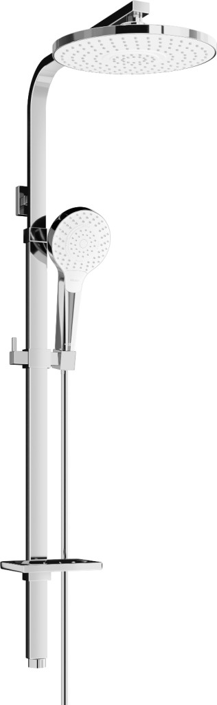 POZOR: lze použít jen pro speciální baterii s vrchním vývodem Technická data: Materiál sloupu: nerezová ocel, ABS Povrchová úprava sloupku: Chrome Výška: 930-1250 mm Šířka sloupku: 30 mm Vzdálenost od stěny: 385 mm Připojení: G 3/4 " Miska na mýdlo Posuvný držák sluchátka Nastavitelné montážní držáky Materiál dešťové sprchy: plast Dešťová sprcha: chrom / bílá Velikost dešťové sprchy: ø225 mm Materiál sluchátek: plast Povrchová úprava sluchátek: chrom / bílá Počet funkcí: 3 Materiál hadice: PVC Povrchová úprava hadice: chrom Délka hadice: 150 cm Mosazné hroty Hladký povrch usnadňuje udržování čistoty Otočné hroty zabraňují kroucení Pružný materiál odolný proti roztažení a ohnutí