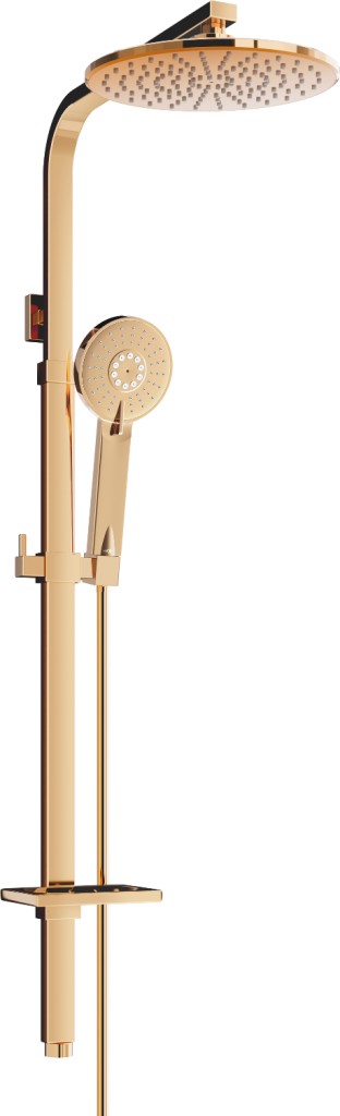POZOR: lze použít jen pro speciální baterii s vrchním vývodem Technická data: Materiál sloupu: nerezová ocel, ABS Povrchová úprava sloupku: Rose Gold Výška: 930-1250 mm Šířka sloupku: 30 mm Vzdálenost od stěny: 385 mm Připojení: G 3/4 " Miska na mýdlo Posuvný držák sluchátka Nastavitelné montážní držáky Materiál dešťové sprchy: plast Povrchová úprava deště: Rose Gold Velikost dešťové sprchy: ø220 mm Materiál sluchátek: plast Povrchová úprava sluchátek: růžové zlato Počet funkcí: 3 Materiál hadice: PVC Hadová úprava: růžové zlato Délka hadice: 150 cm Mosazné hroty Hladký povrch usnadňuje udržování čistoty Otočné hroty zabraňují kroucení Pružný materiál odolný proti roztažení a ohnutí