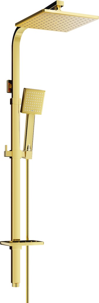 POZOR: lze použít jen pro speciální baterii s vrchním vývodem Technická data: Materiál sloupu: nerezová ocel, ABS Povrchová úprava sloupku: Zlato Výška: 930-1250 mm Šířka sloupku: 30 mm Vzdálenost od stěny: 385 mm Připojení: G 3/4 " Miska na mýdlo Posuvný držák sluchátka Nastavitelné montážní držáky Materiál dešťové sprchy: plast Dešťová sprcha: zlatá Velikost dešťové sprchy: 200x200 mm Materiál sluchátek: plast Povrchová úprava sluchátek: zlatá Počet funkcí: 1 Materiál hadice: PVC Hadová úprava: zlato Délka hadice: 150 cm Mosazné hroty Hladký povrch usnadňuje udržování čistoty Otočné hroty zabraňují kroucení Pružný materiál odolný proti roztažení a ohnutí