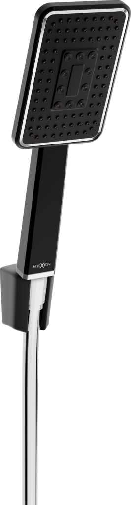 Technická data: Materiál sluchátek: plast Povrchová úprava sluchátek: černá / chrom Počet funkcí: 1 Připojení: G 1/2 " Výška sluchátek: 260 mm Šířka hlavy: 87 mm Materiál rukojeti: plast Povrchová úprava rukojeti: černá Typ montáže: Nástěnný Rozměry rukojeti: 60x44 mm Vzdálenost od stěny: 42 mm Materiál hadice: PVC Povrchová úprava hadice: chrom Délka hadice: 150 cm Připojení: 1/2 " Mosazné hroty Hladký povrch usnadňuje udržování čistoty Otočné hroty zabraňují kroucení Pružný materiál odolný proti roztažení a ohnutí